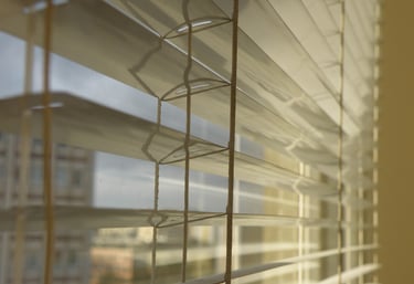 Sleek and versatile, Venetian blinds are composed of horizontal slats that can be tilted to control light or pulled up for an unobstructed view. They work well in both homes and offices.